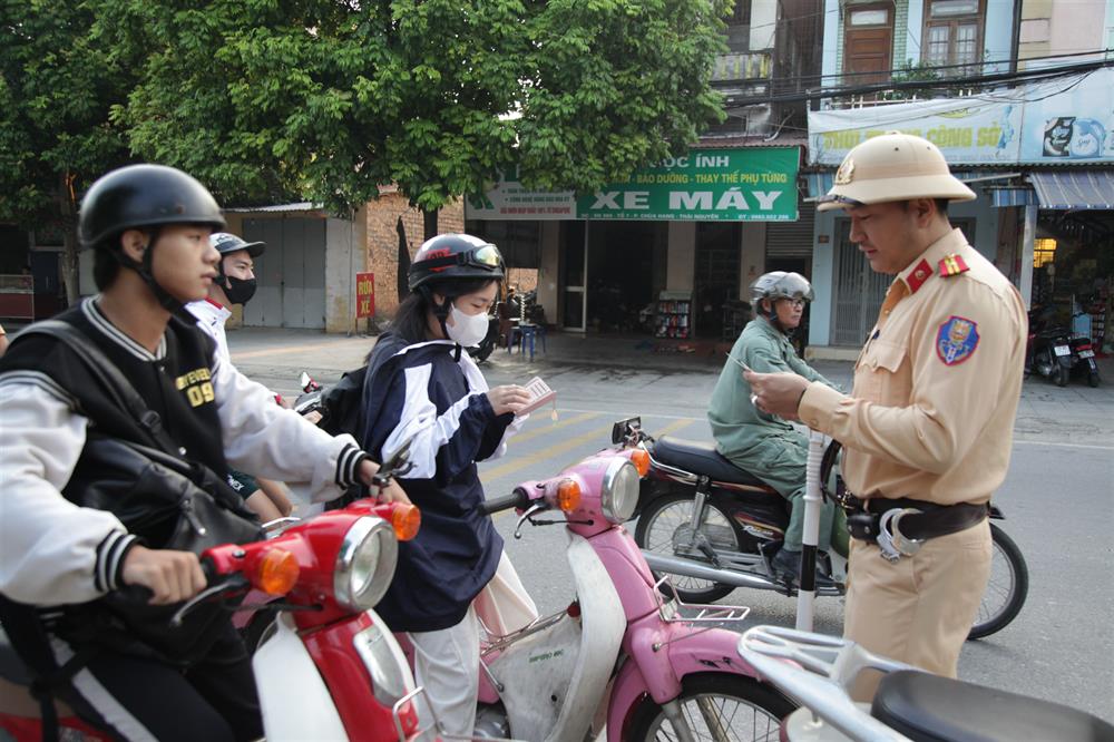 Lực lượng chức năng kiểm tra, xử lý vi phạm TTATGT đối với học sinh.