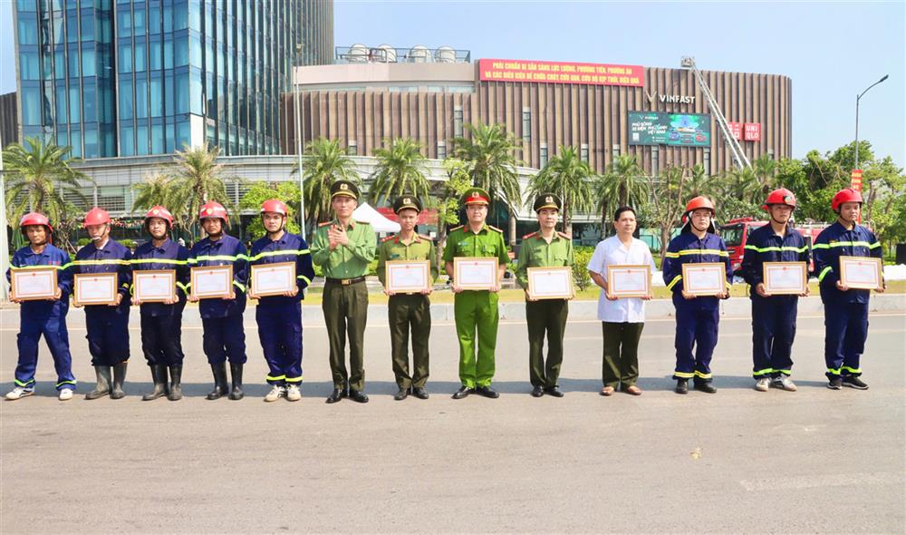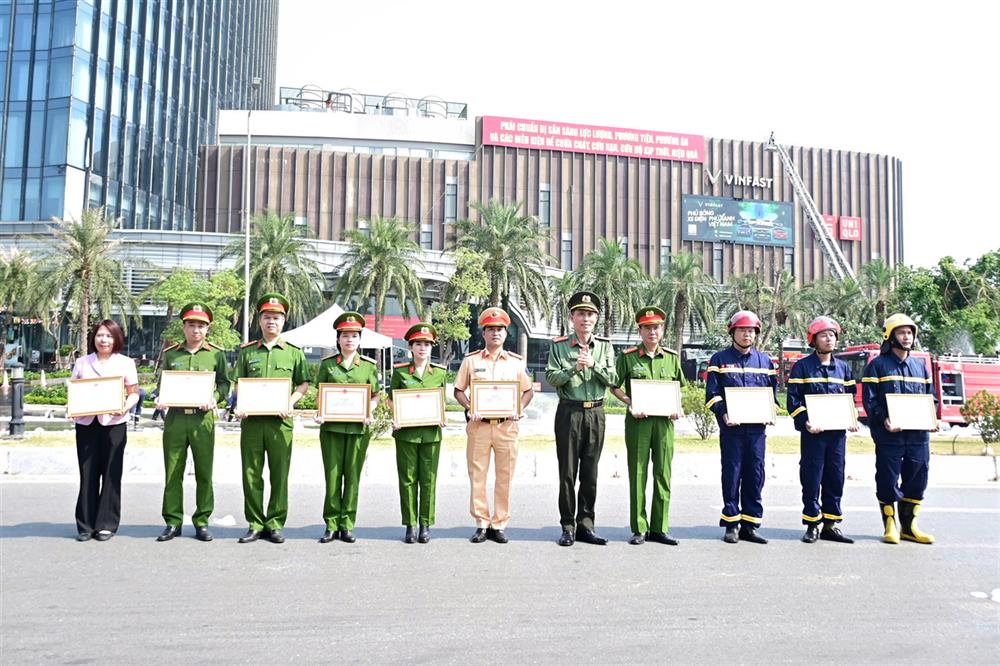 Nhân dịp này, Giám đốc Công an thành phố tặng Giấy khen cho 11 tập thể và 12 cá nhân có thành tích xuất sắc tham gia diễn tập.
