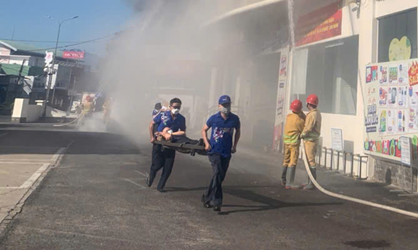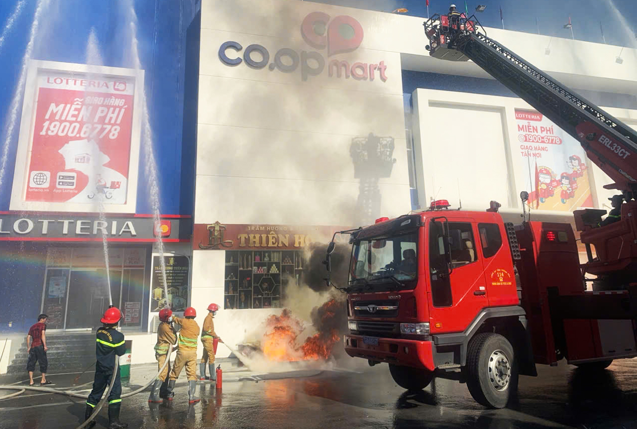 Tình huống giả định, sáng cùng ngày, tại khu vực kho hàng tầng 2 siêu thị Co.opmart Cam Ranh (do nhân viên vi phạm các quy định an toàn PCCC (hút thuốc lá trong khu vực kho, tàn thuốc rơi dính vào các kiện hàng có các chất dễ cháy) bất ngờ xảy ra hỏa hoạn. Ban đầu, đám cháy âm ỉ, sau đó đã phát triển thành ngọn lửa, do hệ thống báo cháy, chữa cháy đang trong quá trình bảo dưỡng không hoạt động nên không phát hiện được đám cháy. Lúc sau, đám cháy lan nhanh; khói lan theo đường ống kỹ thuật xuống khu vực kho hàng tầng 1 và khu bán hàng tự chọn tại tầng 1. Đám cháy nhanh chóng phát triển, một lượng khói, khí độc bao trùm toàn bộ khu vực bán quần áo tầng 2, kho hàng tầng 1 và khu vực bán hàng tự chọn tầng 1, ảnh hưởng tầm nhìn gây khó khăn cho công tác thoát nạn, tìm kiếm và cứu người bị nạn. Thời điểm cháy, có khoảng 200 khách hàng và nhân viên đang tập trung ở các khu vực bán hàng tự chọn, mua sắm..., phát hiện đám cháy đã hoảng loạn, tìm cách thoát ra ngoài.