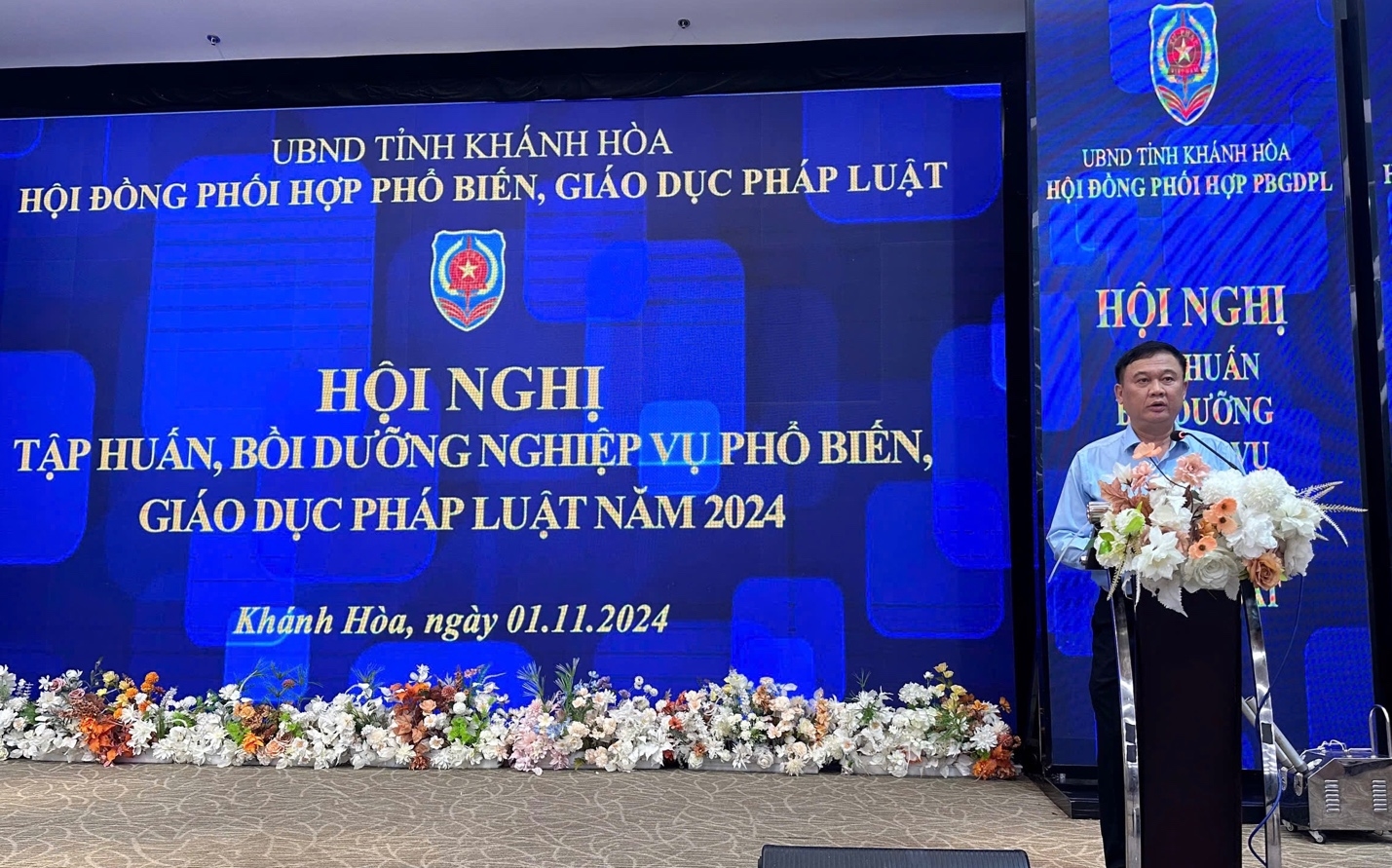 Sáng 01/11/2024, Hội đồng phối hợp phổ biến, giáo dục pháp luật tỉnh Khánh Hòa tổ chức Hội nghị tập huấn, bồi dưỡng nghiệp vụ phổ biến, giáo dục pháp luật cho hơn 200 đại biểu là báo cáo viên pháp luật cấp tỉnh, cấp huyện và lãnh đạo, công chức làm công tác phổ biến, giáo dục pháp luật ở các Sở, ngành, đơn vị cấp huyện trong toàn tỉnh. Tham dự và phát biểu khai mạc tại Hội nghị có đồng chí Đặng Văn Khánh - Phó Giám đốc Sở Tư pháp, Phó Chủ tịch Hội đồng phối hợp phổ biến, giáo dục pháp luật tỉnh. Đồng chí Phan Hồng Nguyên - Phó Cục trưởng Cục Phổ biến, giáo dục pháp luật - Bộ Tư pháp làm báo cáo viên tại Hội nghị.
