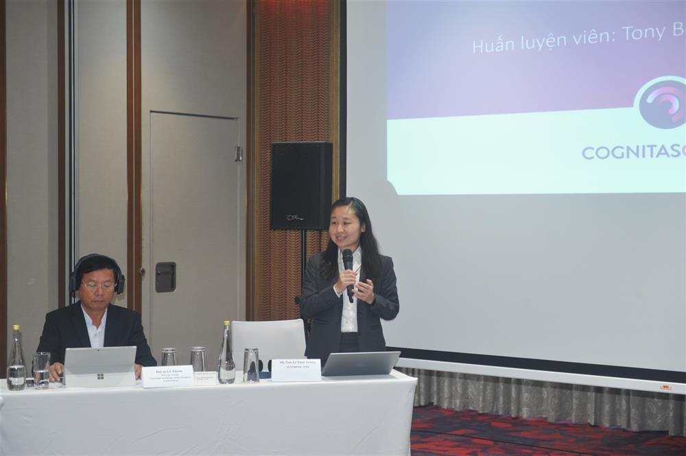 Bà Tan Li Xian Tricia, đại diện Ban An ninh môi trường INTERPOL phát biểu tại Lễ khai mạc hội thảo tập huấn.
