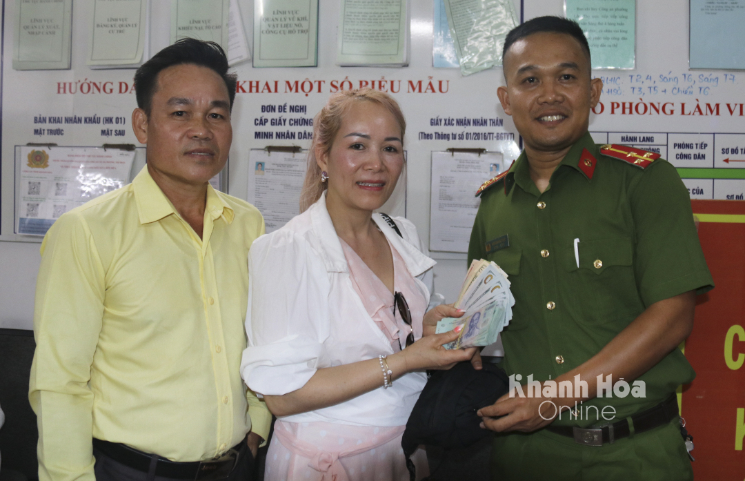 Tối 10-6, Công an phường Lộc Thọ (TP. Nha Trang) tiến hành trao trả tài sản, gồm 2.800 USD, gần 70 triệu đồng, 2 dây chuyền và một đôi bông tai (tổng trị giá gần 200 triệu đồng) cho nữ du khách Trương Thị Bé (sinh năm 1977) - Việt kiều Mỹ. Đây là số tài sản mà bà Bé trong lúc đi chơi cùng gia đình tại khu vực gần Tháp Trầm Hương vào sáng 10-6 đã đánh rơi, được cán bộ thuộc Công ty Cổ phần Điện lực Khánh Hòa (PC Khánh Hòa) nhặt được và nhanh chóng đưa đến cơ quan công an để tìm người trao trả.